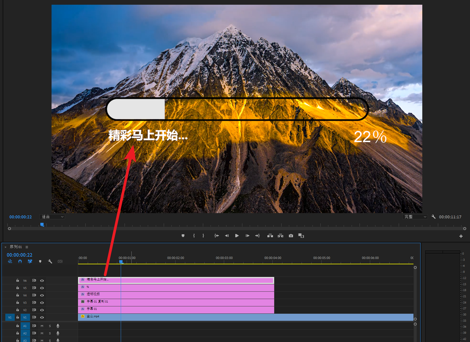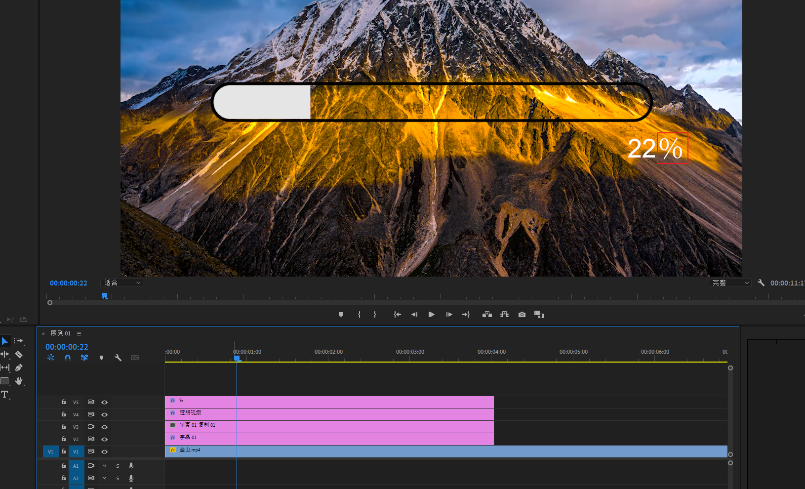 新建一个字幕输入%,移动到时间码旁边