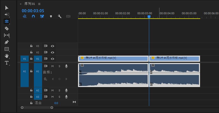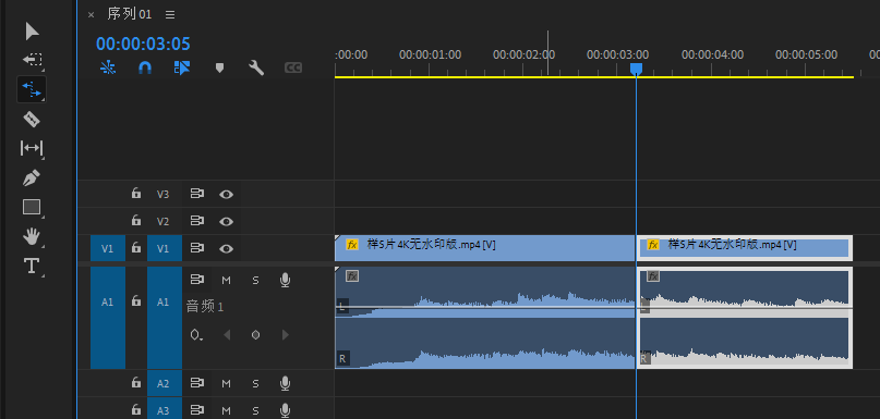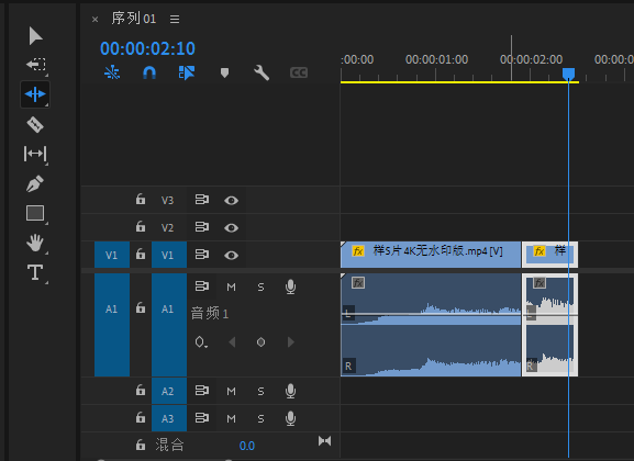 在素材分割处可以删除两边的素材其中一端的素材而不留空隙