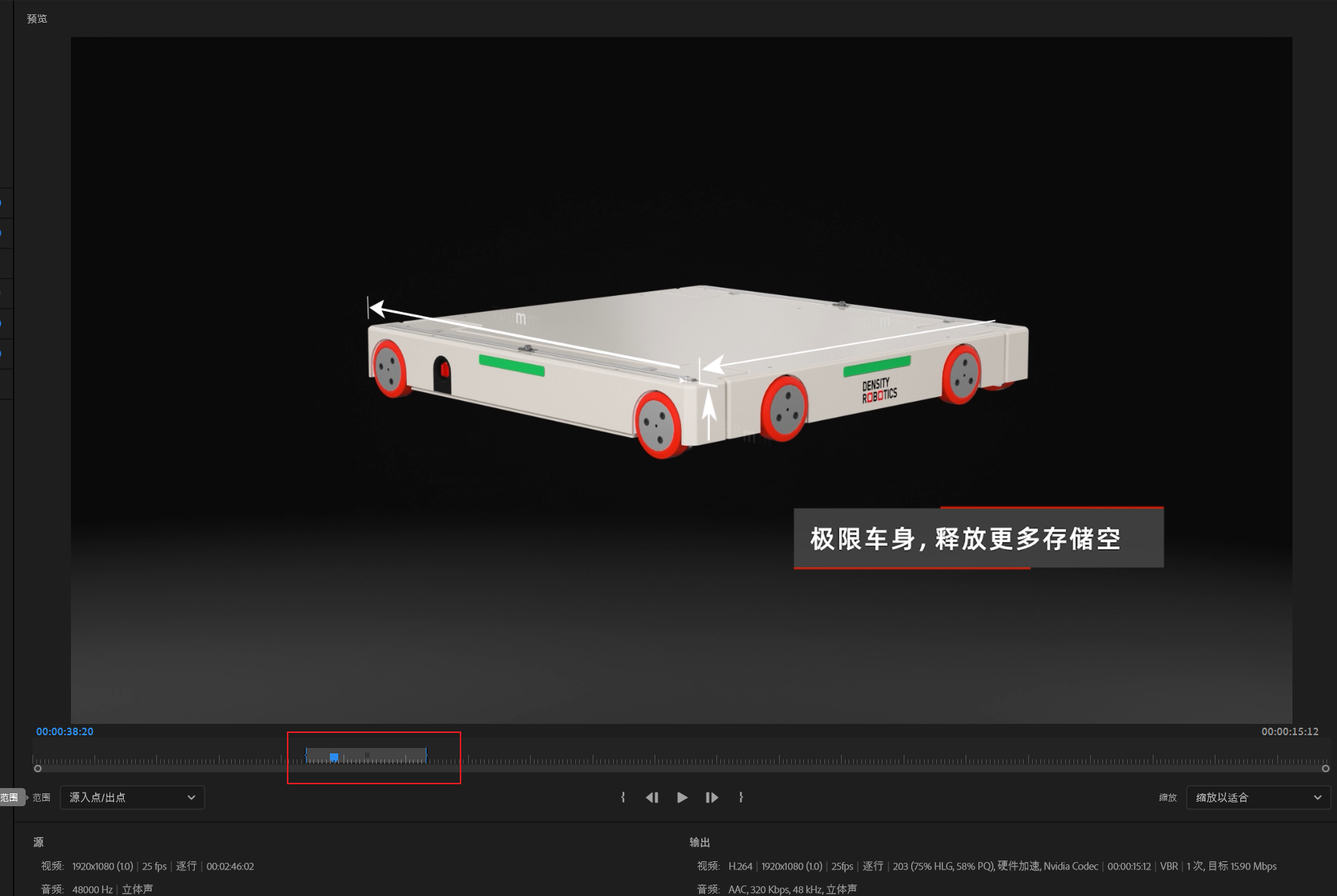 标记了出点入点之后,输出的视频就只有出入点之间的部分。