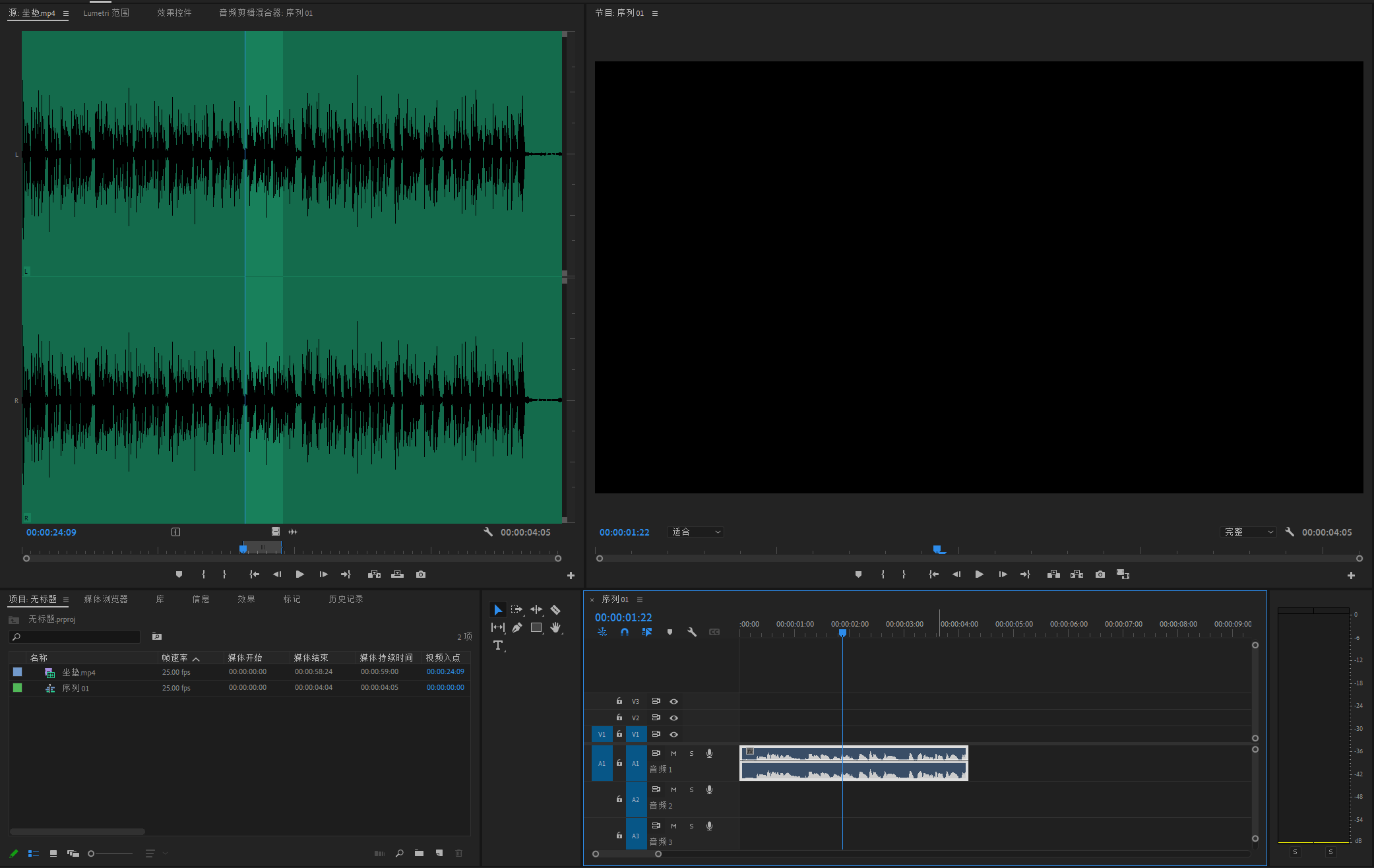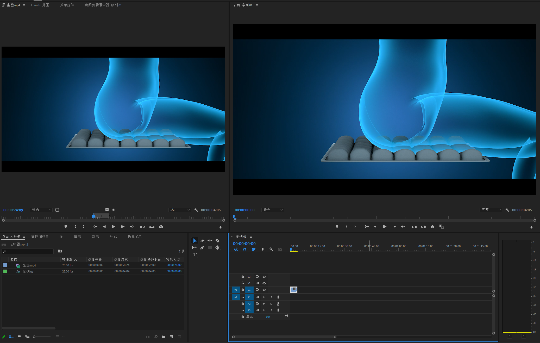 源面版就是素材预览窗口,在项目面版双击素材的情况下,就可以在源面版窗口预览到素材,这个窗口的功能与预览窗口几乎一样,源面版的作用就是不用把素材拖到轨道上也可以预览内容,然后就在源面版窗口截取需要用到的素材片段拖到视频轨道上,这样就避免了视频轨道堆积太多的无用素材。