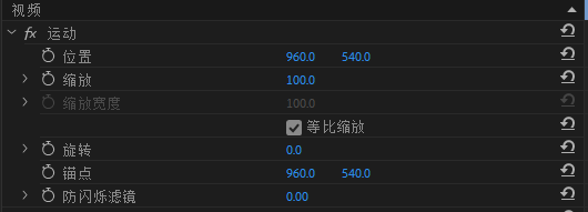 位置:调整素材的画面在预览窗口的位置,这里控制的是X轴与Y轴的数据。