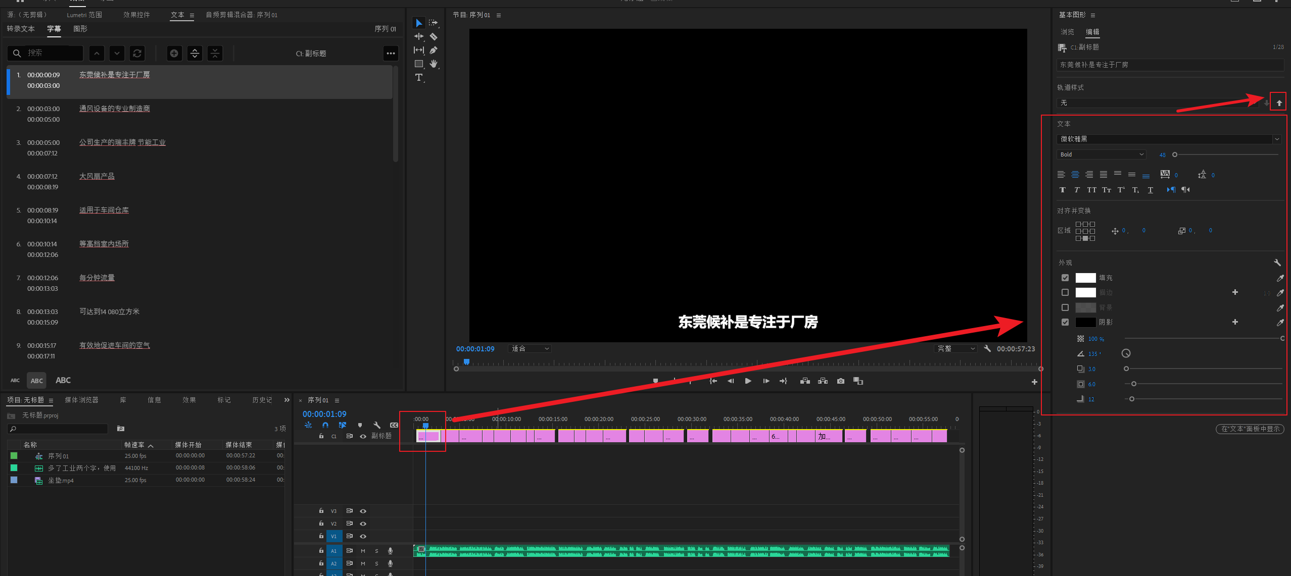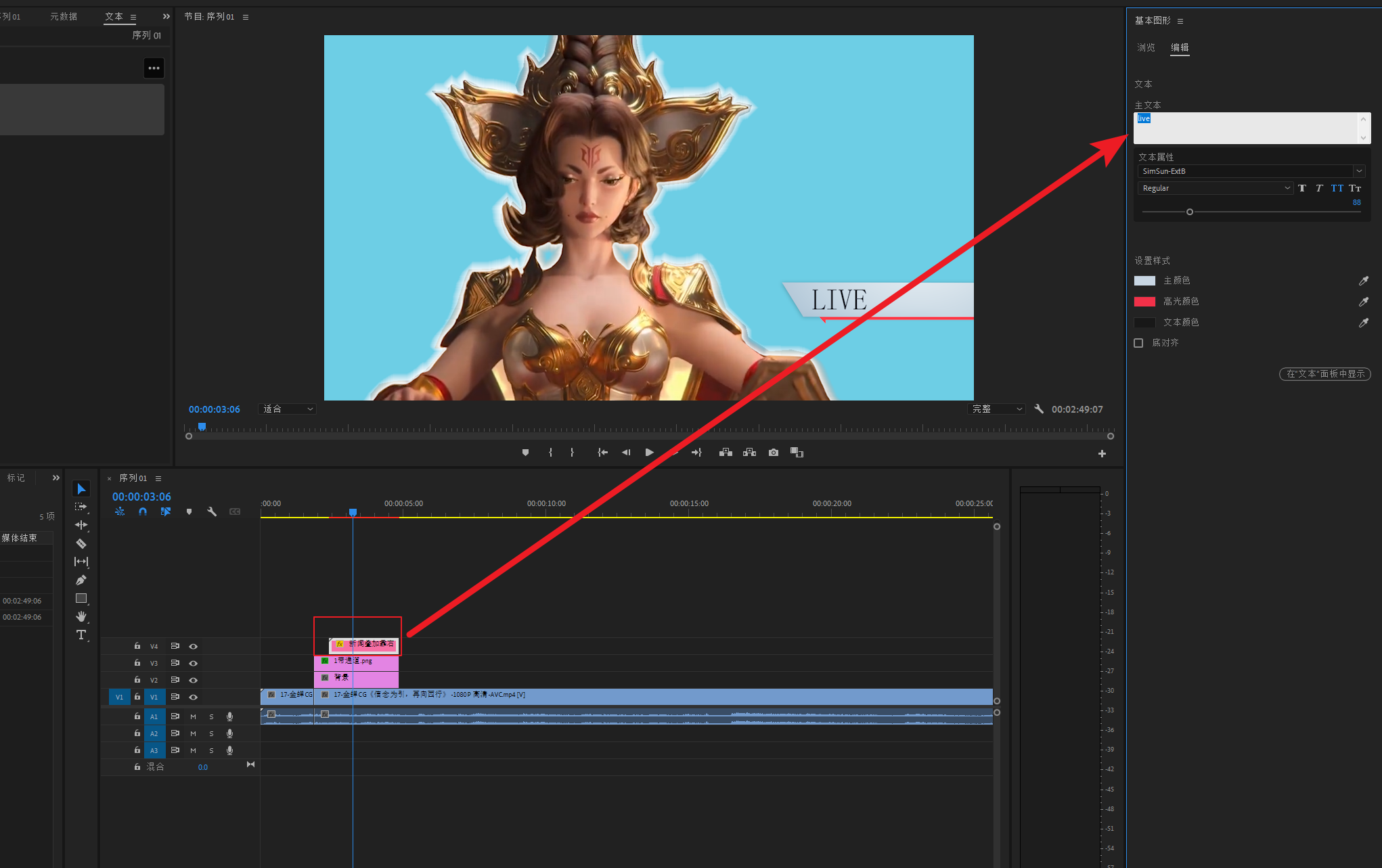 基本图形字幕只要预览窗口上选中字幕。然后双击就可以修改字幕内容以及字幕字体样式等