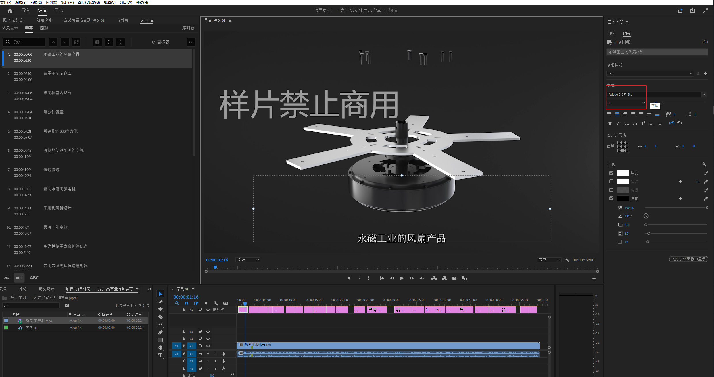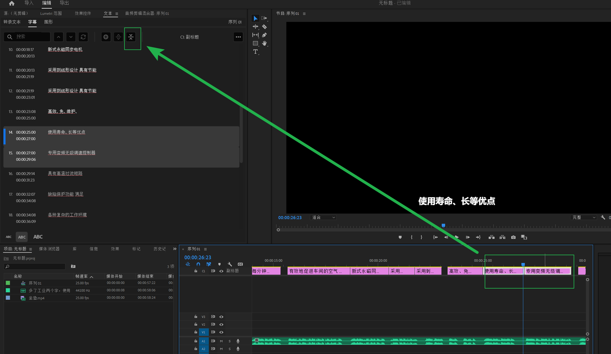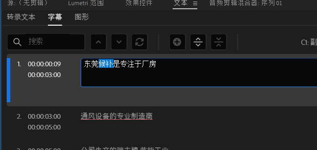 如果字幕上的字词发生错误时,在文本面版的字幕上双击字幕修改
