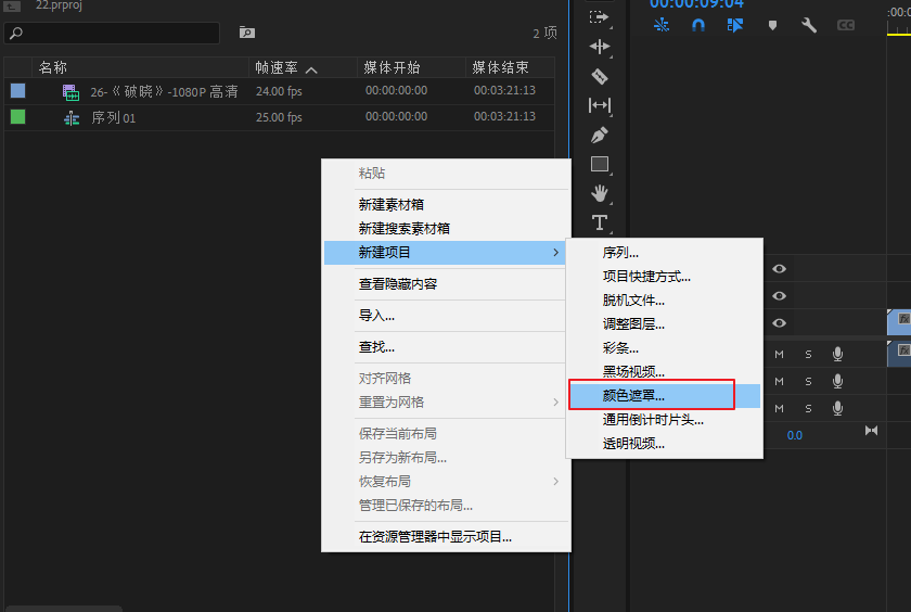 新建一个颜色遮罩层,大小为1920*1080,颜色选择为淡蓝色。命名为背景。