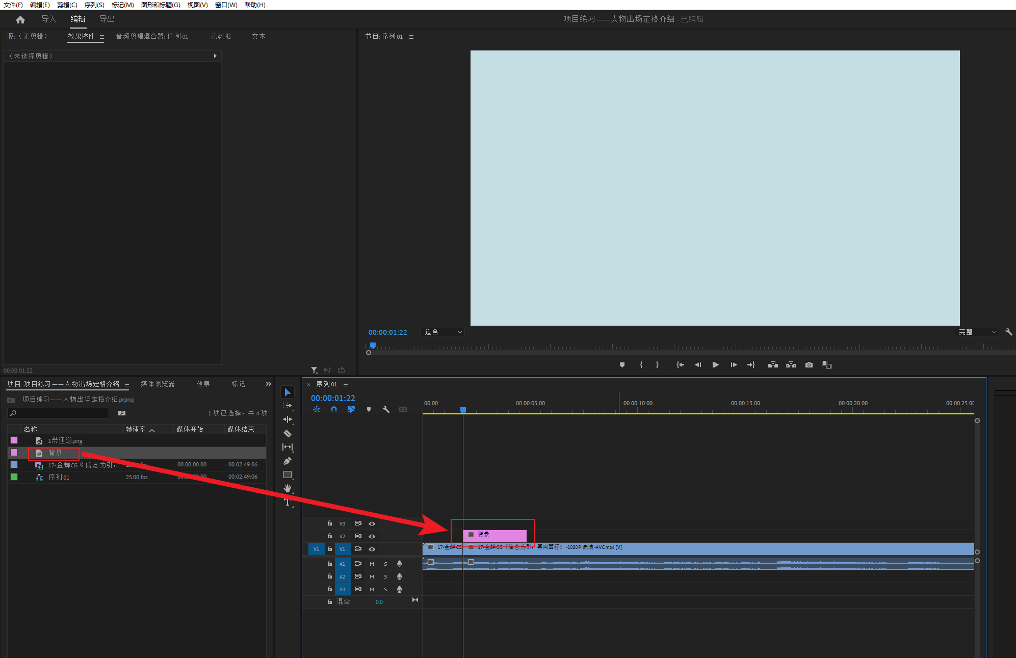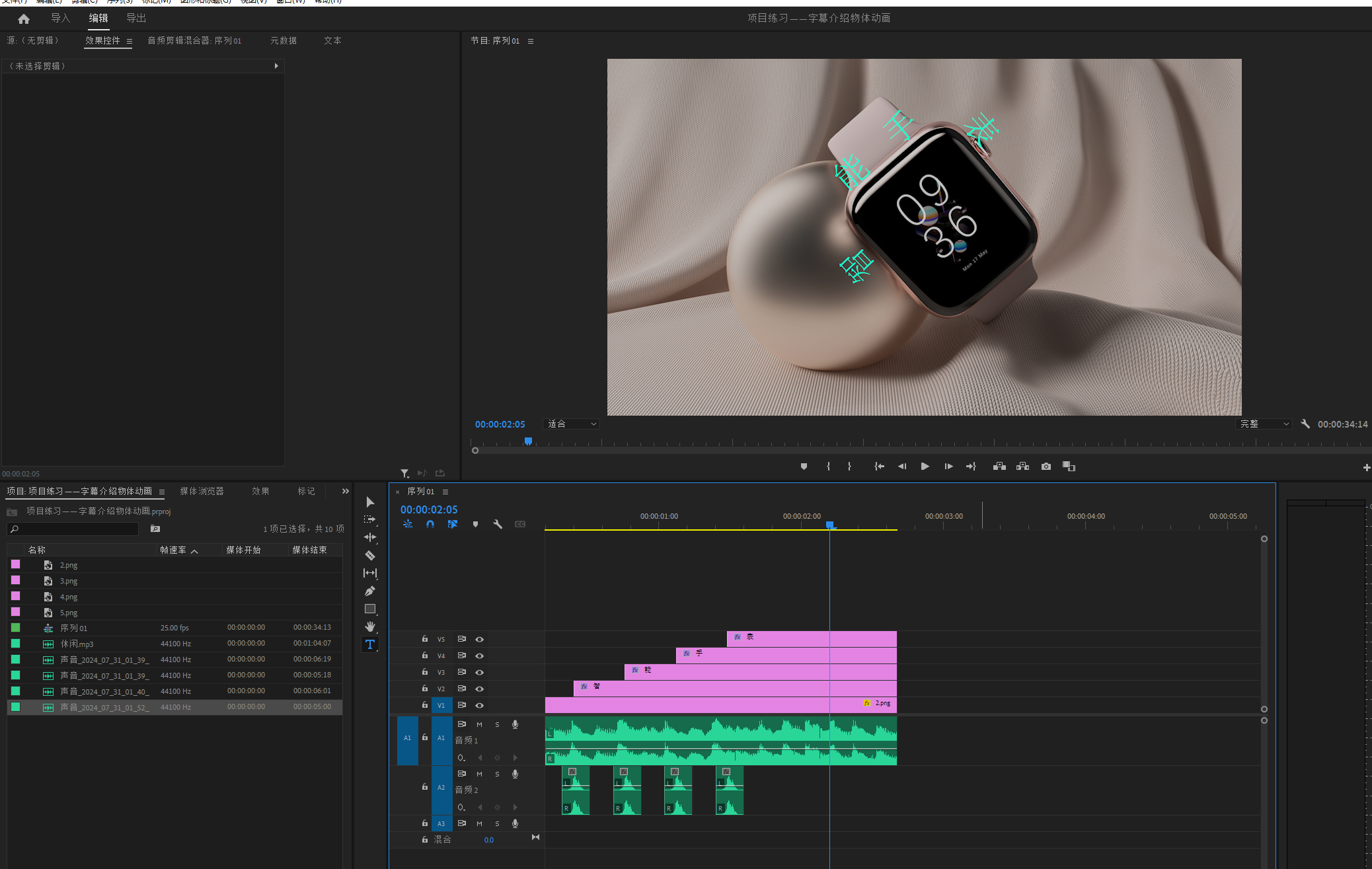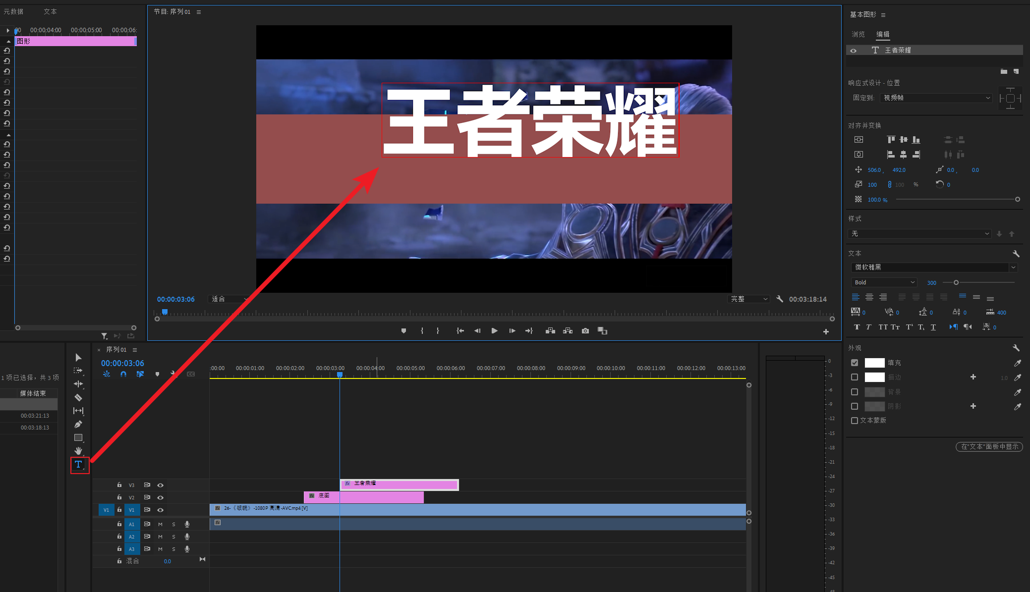 我们在字幕轨上选中开头的第一个字幕,然后来到右边的基本图形里