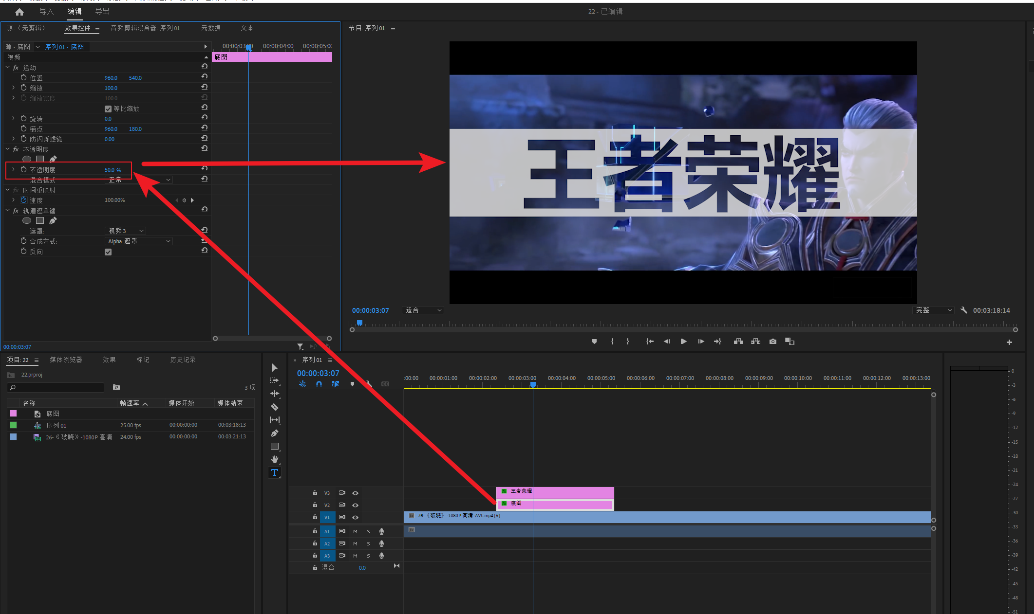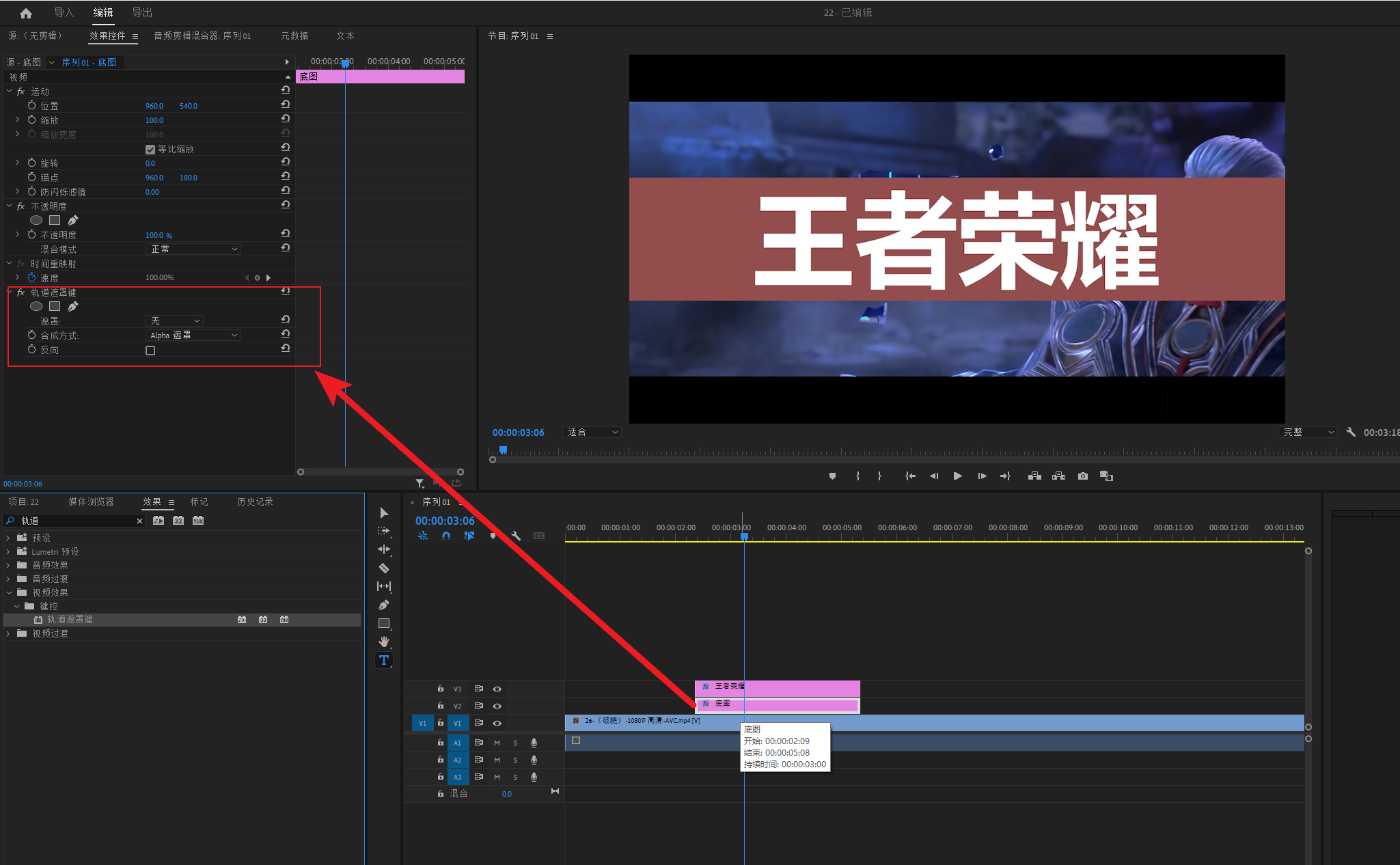 选中底图打开效果控件面版的“ 轨道遮罩键”的参数