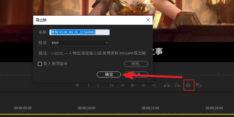 时间线指针选取人物出场适合介绍的画面,然后剪断视频