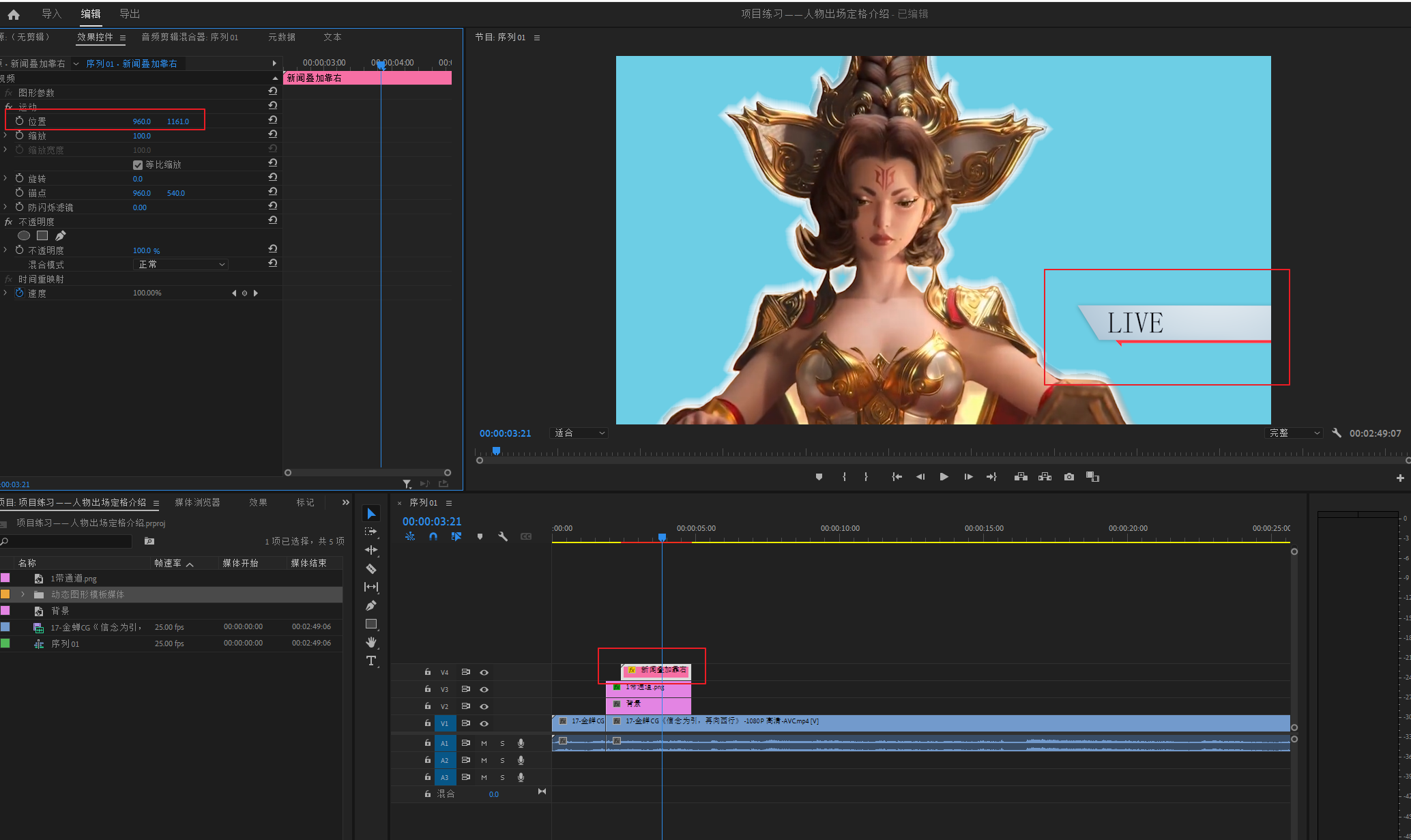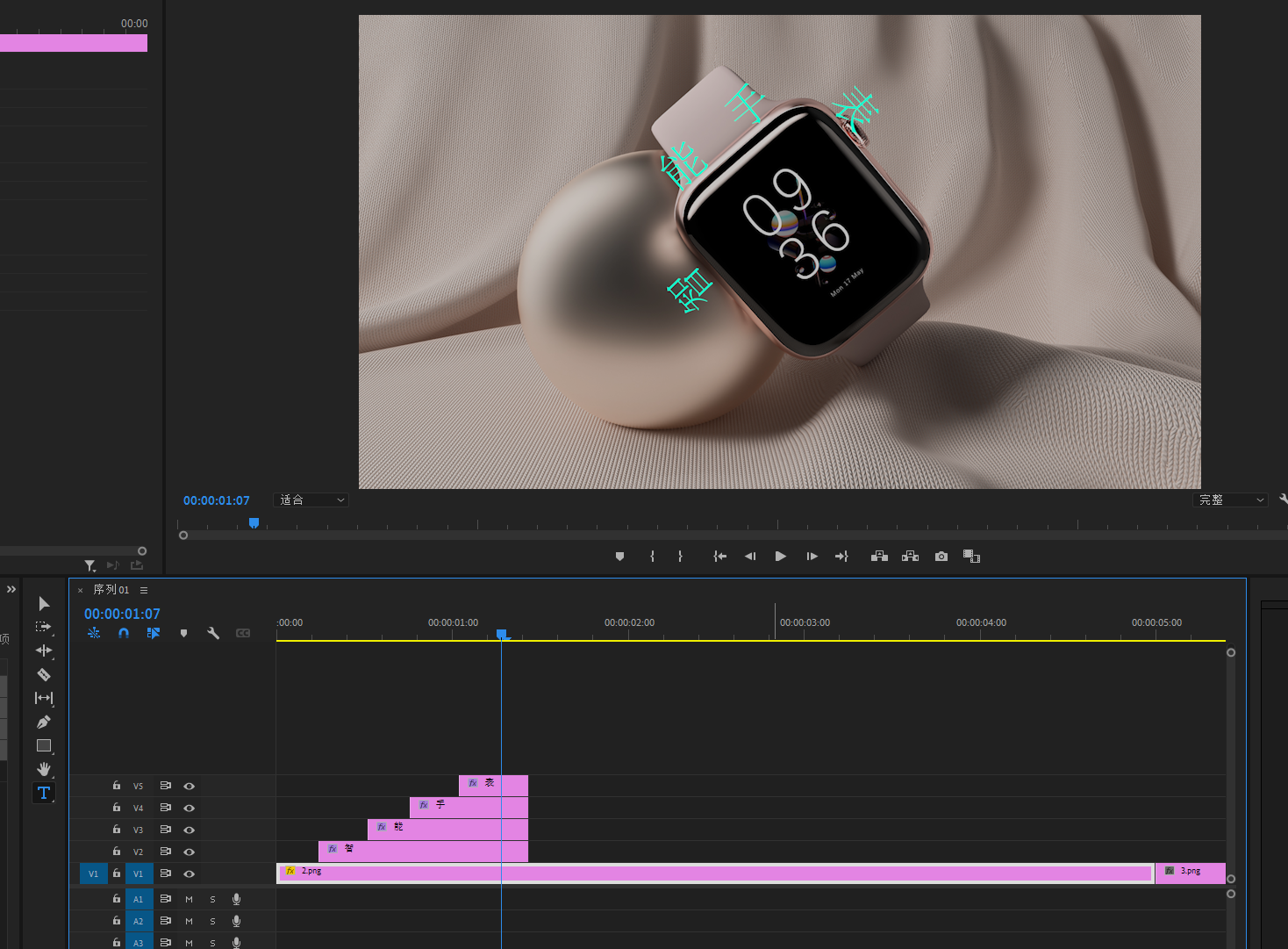 将底图拖到视频轨道,摆放到需要出现字幕的合适位置,并调整好长度