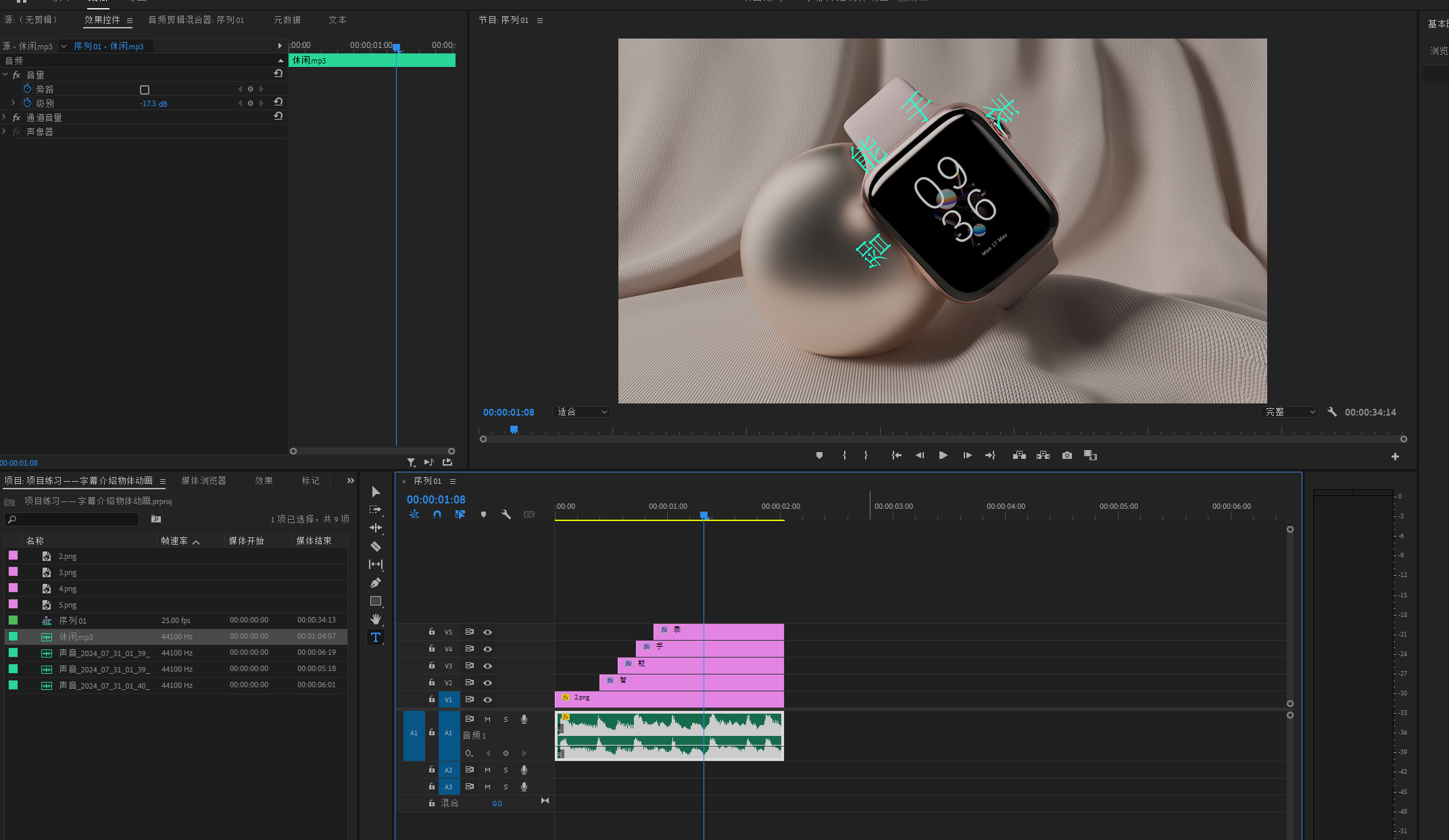 1.基本图形模板可以直接拖拽到视频轨道上使用,它的字幕是带有一些动画效果,使用起来非常方便。