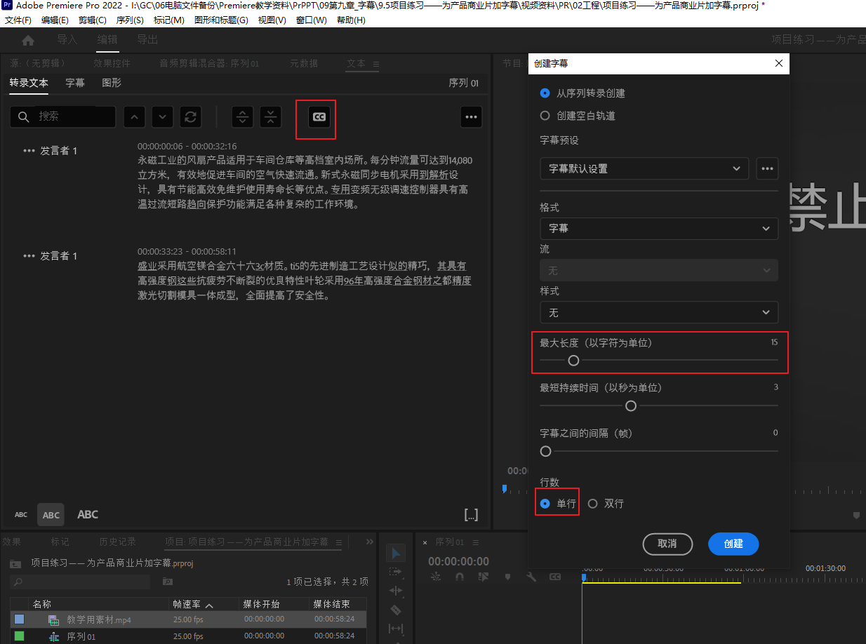 点击创建后就会自动创建字幕,还会生成一条字幕轨道。
