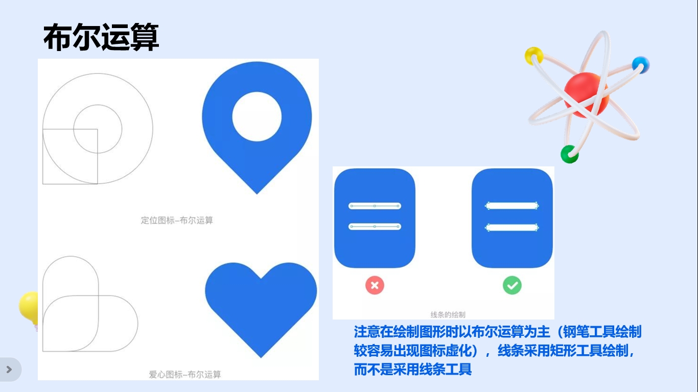 注意在绘制图形时以布尔运算为主(钢笔工具绘制较容易出现图标虚化),线条采用矩形工具绘制,而不是采用线条工具,如图2。