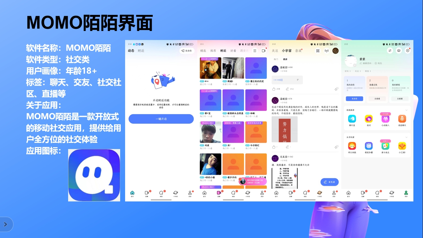关于应用:MOMO陌陌是一款开放式的移动社交应用,提供给用户全方位的社交体验,如图7。