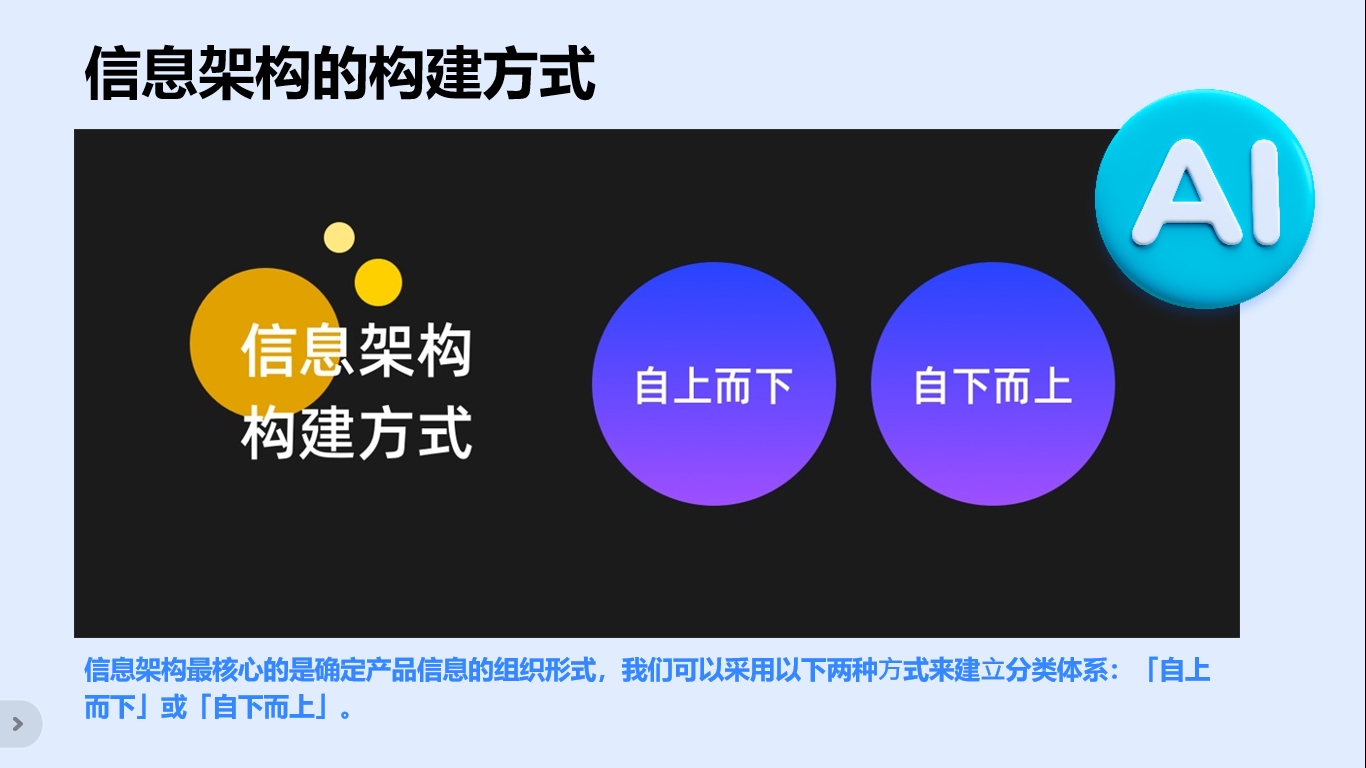 信息架构最核心的是确定产品信息的组织形式,我们可以采用以下两种⽅式来建⽴分类体系:「自上而下」或「自下而上」,如图8。